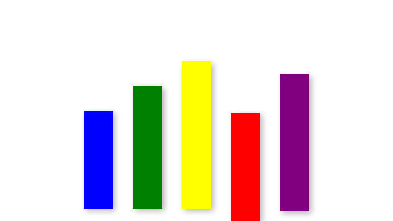 /background-color-white/rectangle-c-blue-w-60-h-200-x-200-y-325-shadow-medium/rectangle-c-green-w-60-h-250-x-300-y-300-shadow-medium/rectangle-c-yellow-w-60-h-300-x-400-y-275-shadow-medium/rectangle-c-red-w-60-h-220-x-500-y-340-shadow-medium/rectangle-c-purple-w-60-h-280-x-600-y-290-shadow-mediumA set of progress bars showing different completion levels. Great for dashboards.
